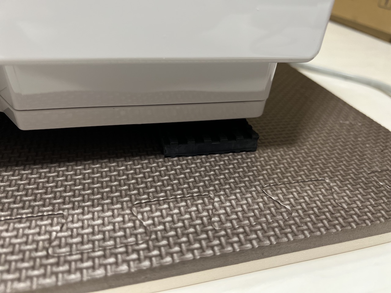 床に響く振動音に関しては、本体の下に防振ゴムとジョイントマットを敷くことで軽減することができました。