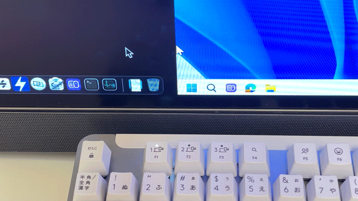 マウスポインタを画面端持っていくだけで隣のデバイスに接続が切り替わる。