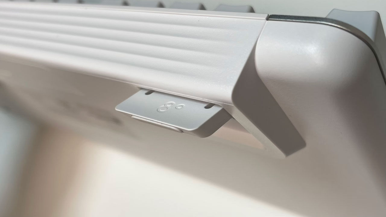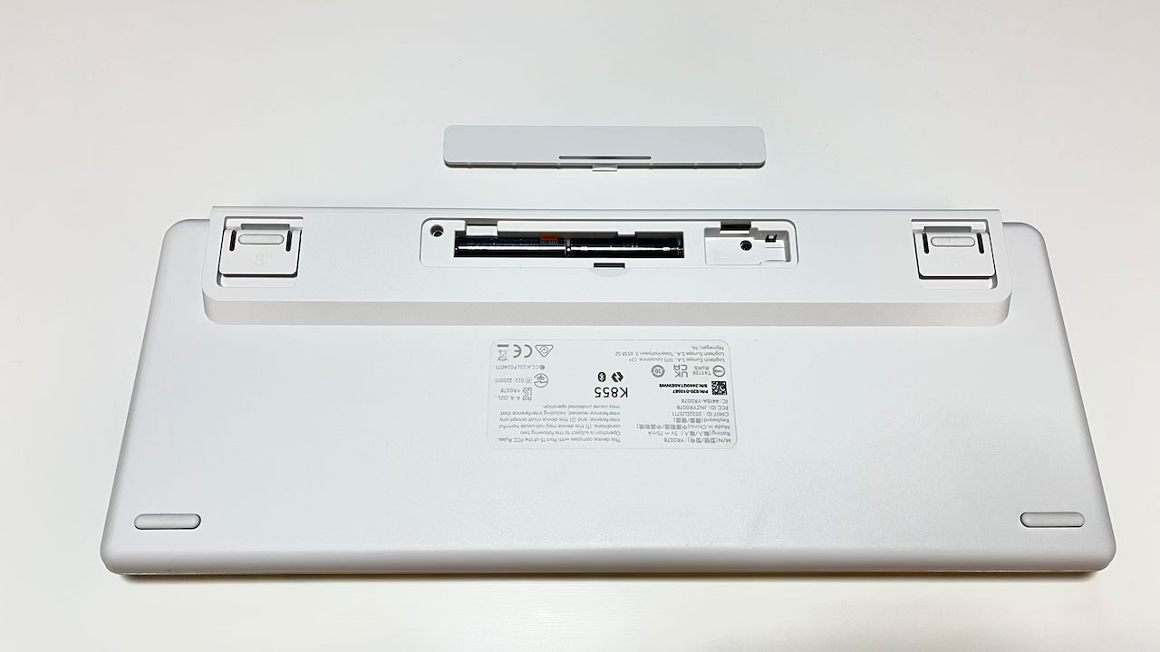 電池スペースの横にはUSB-AのLogi Boltレシーバーを納めるスペースがあります。