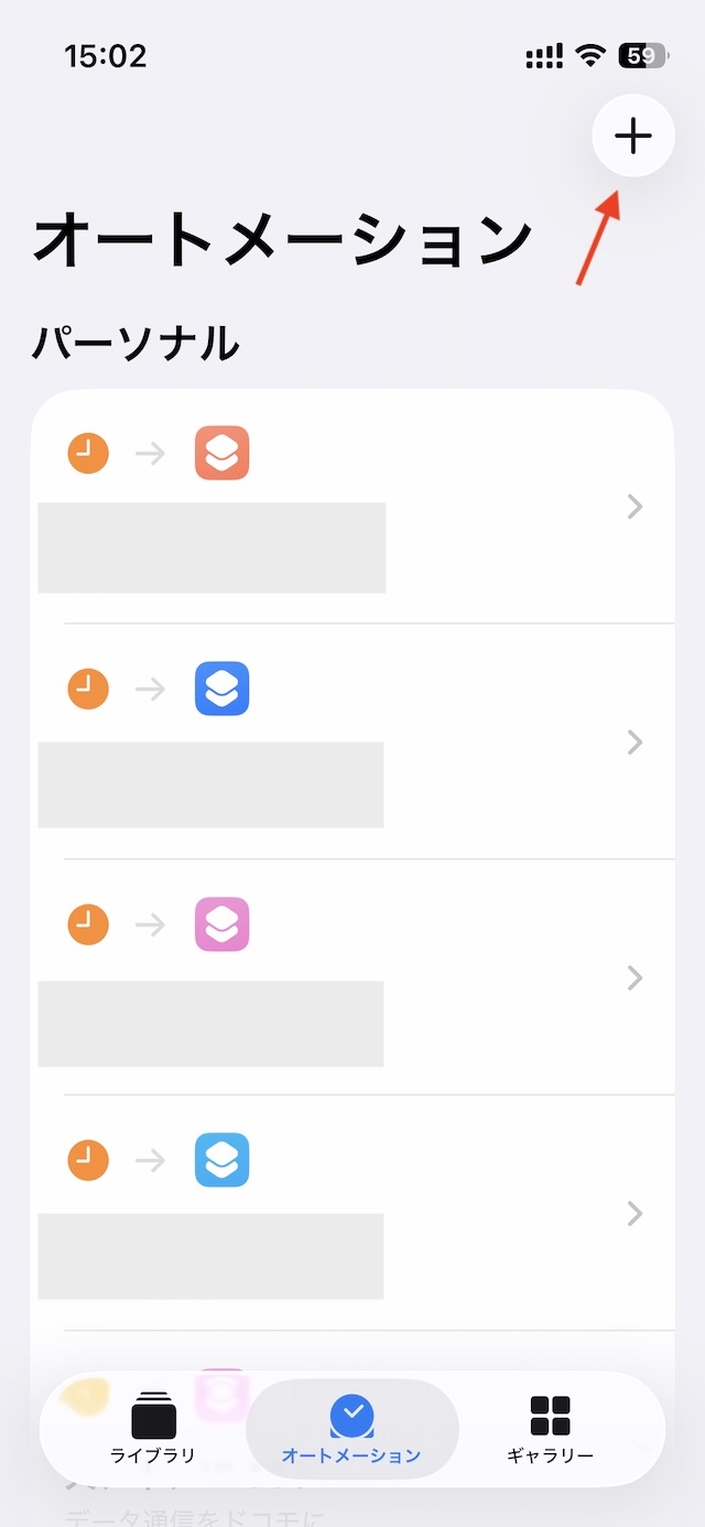 登録できたら左上の戻るボタンを押して戻り、オートメーションに移動します。(下の方にライブラリ、オートメーション、ギャラリーとアイコンが並んでいます)