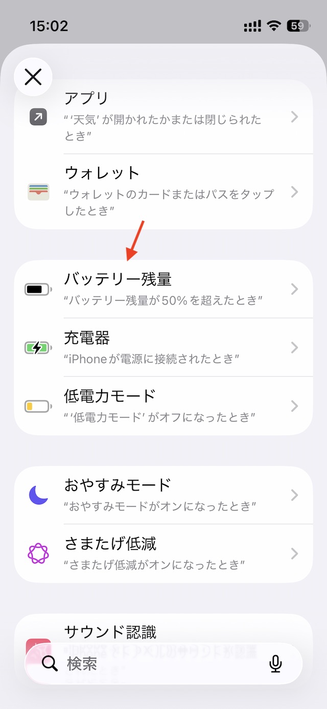 条件の中からバッテリー残量を選択。