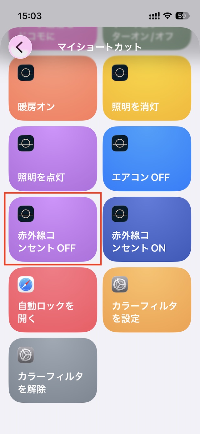 マイショートカットの中から先ほど作成した赤外線リモコンOFFのショートカットを選択します。